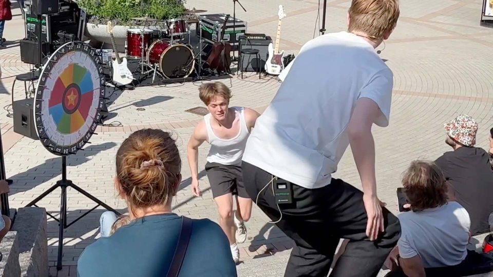 Anställd för att över sommaren spela improvisationsteater med en ensemble och en hög publikinteraktion. Vi spelade åtta föreställningarpå amfiteatern i Lidingö Centrum.