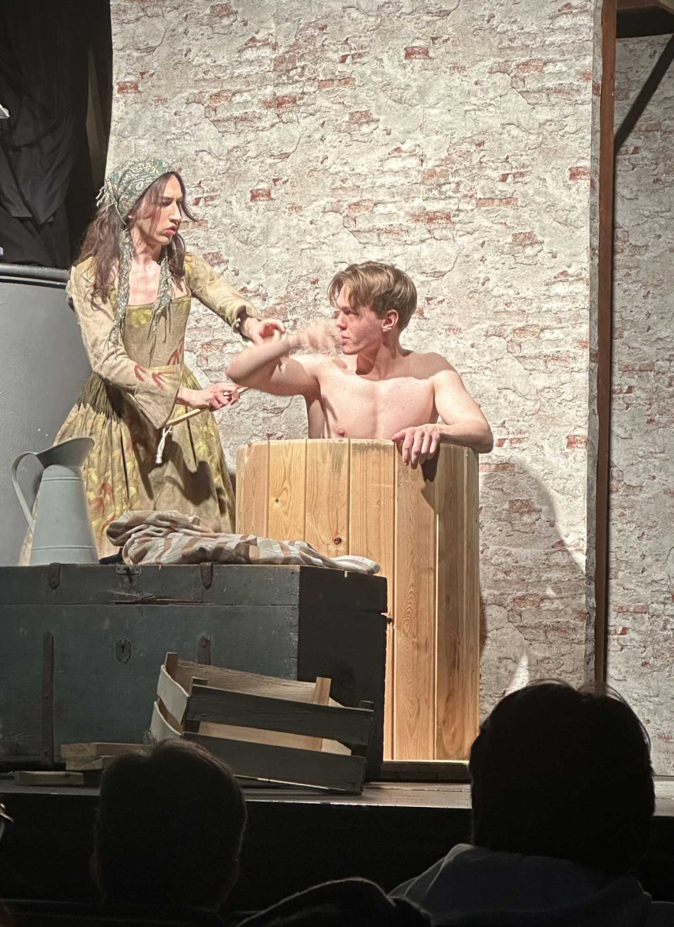 Flera roller i skolans uppsättning av pjäsen av Bertolt Brecht.